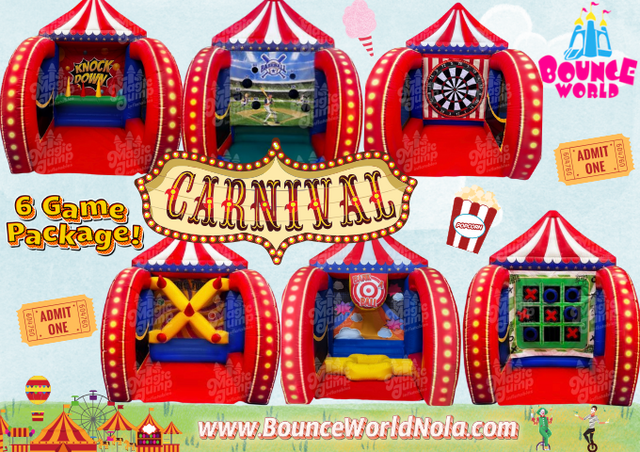 This awesome 6 game carinval unit is perfect for all the themed carnival parties that need an inflatable bounce house that has carnival style games.