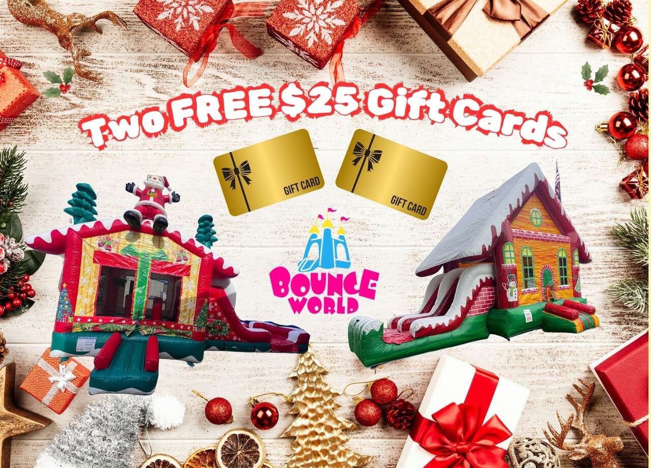 Every order placed this December will be awarded two $25 Bounce World Gift Cards to be sent to family or friends as a Christmas present. After you place your order, tell us who you want to send the gift cards to and we'll email or text them their Christmas present!